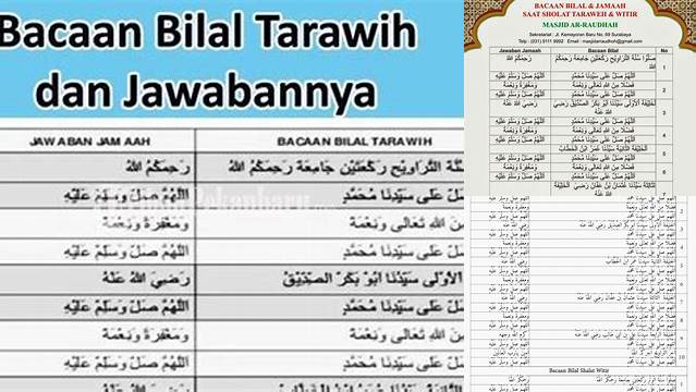 Sebagai penutup, penting bagi kita untuk menyadari significance bacaan bilal shalat tarawih 11 rakaat dalam ibadah kita. Bacaan bilal bukan sekadar bacaan biasa, namun merupakan bagian integral dari shalat tarawih yang memiliki makna dan hikmah yang mendalam. Dengan memahami dan menghayati bacaan bilal, kita dapat meningkatkan kualitas ibadah tarawih kita dan memperoleh manfaat yang lebih besar darinya.